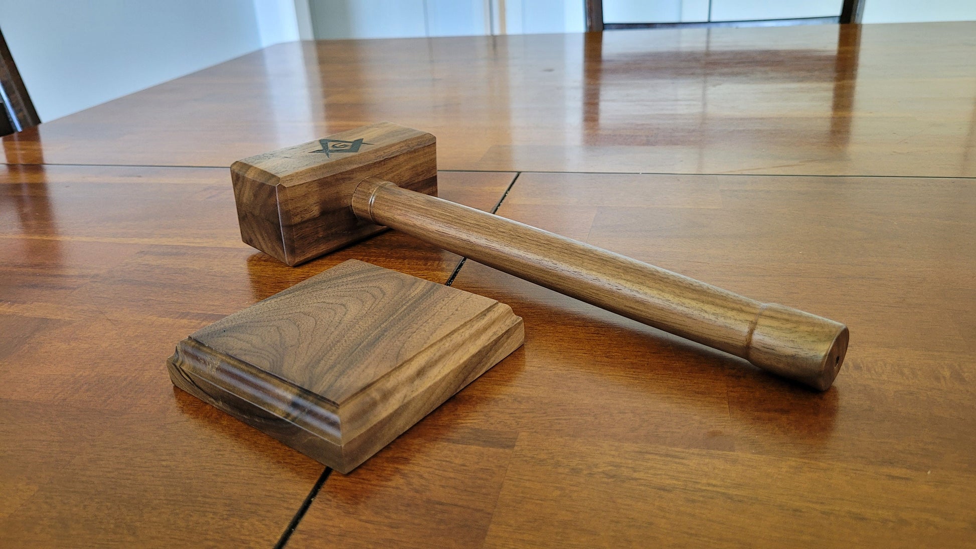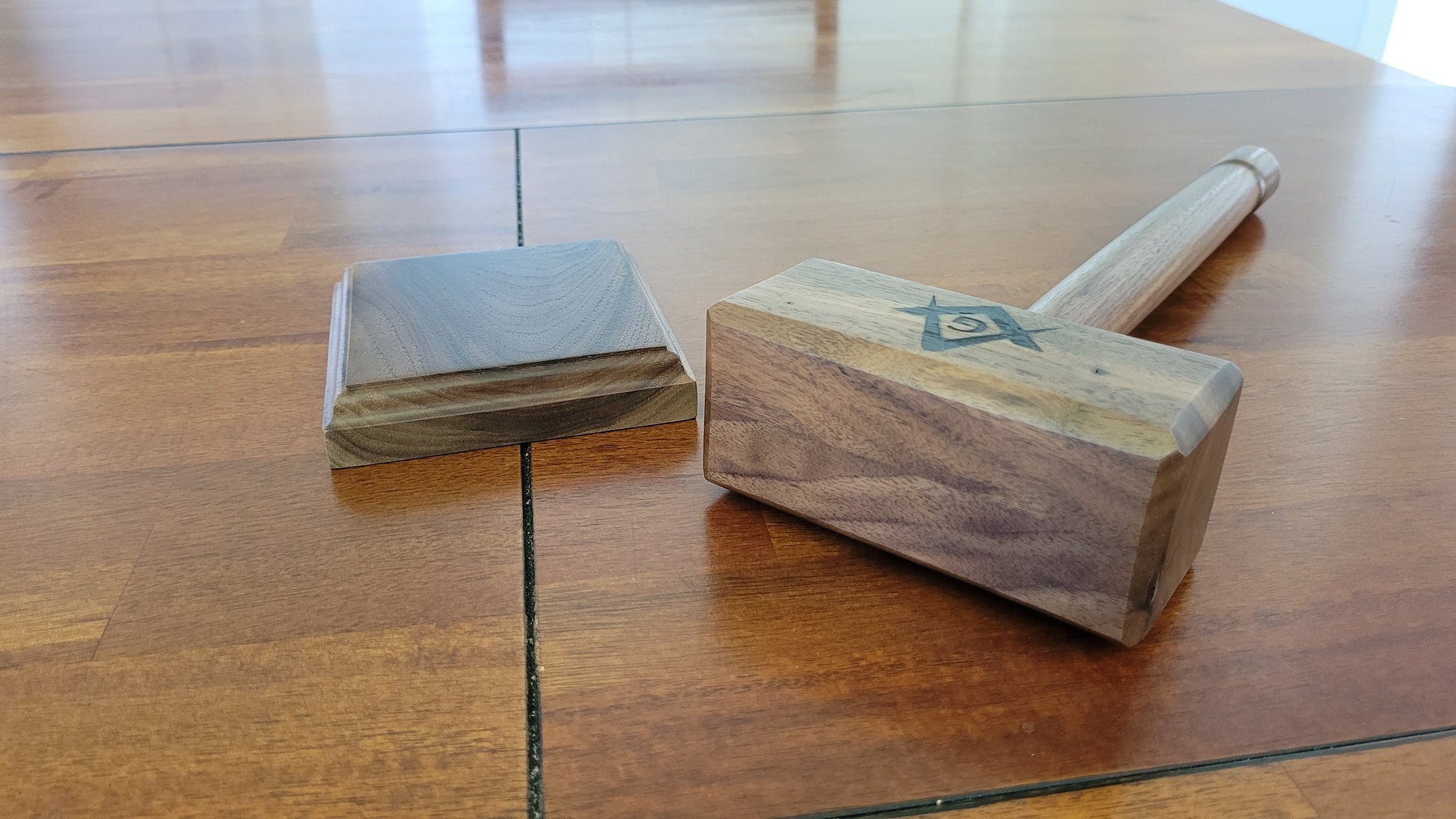 Masonic Gavel with Sounding Block - Solid Walnut