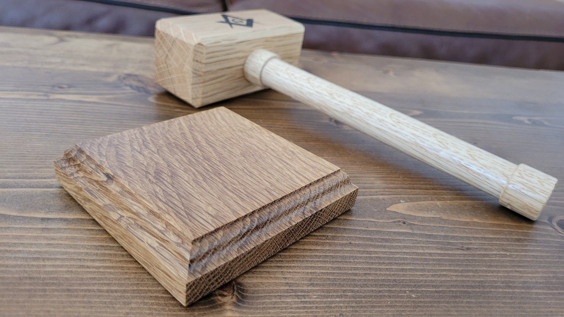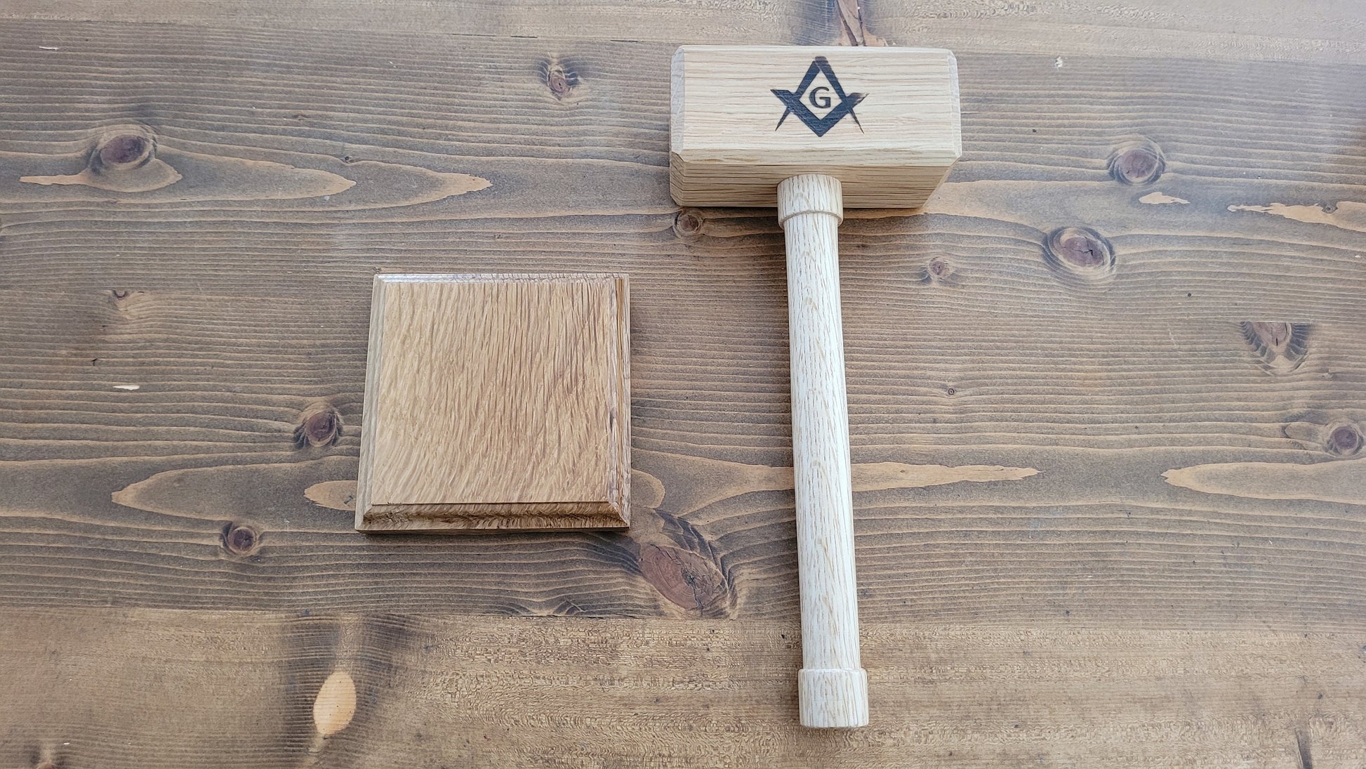 Masonic Gavel with Sounding Block - Solid White Oak - Hand Made