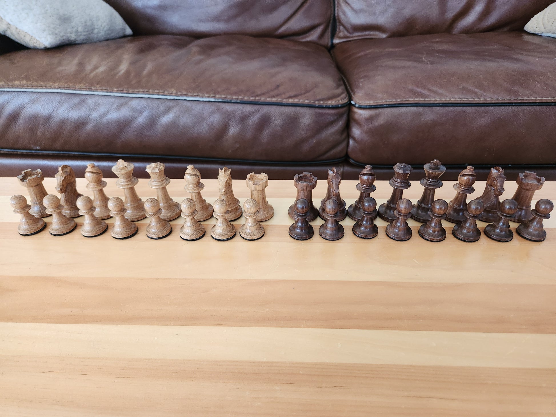 Premium Weighted Hardwood Chess Pieces - Solid Walnut and White Oak