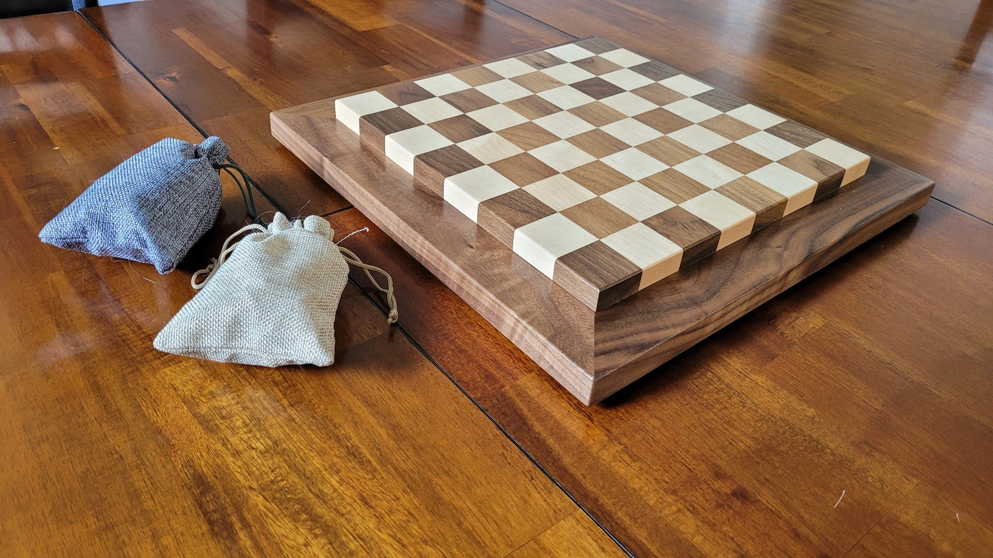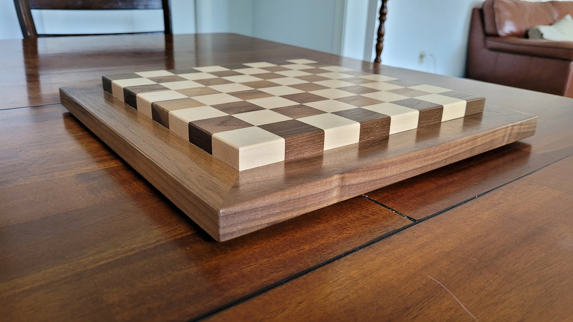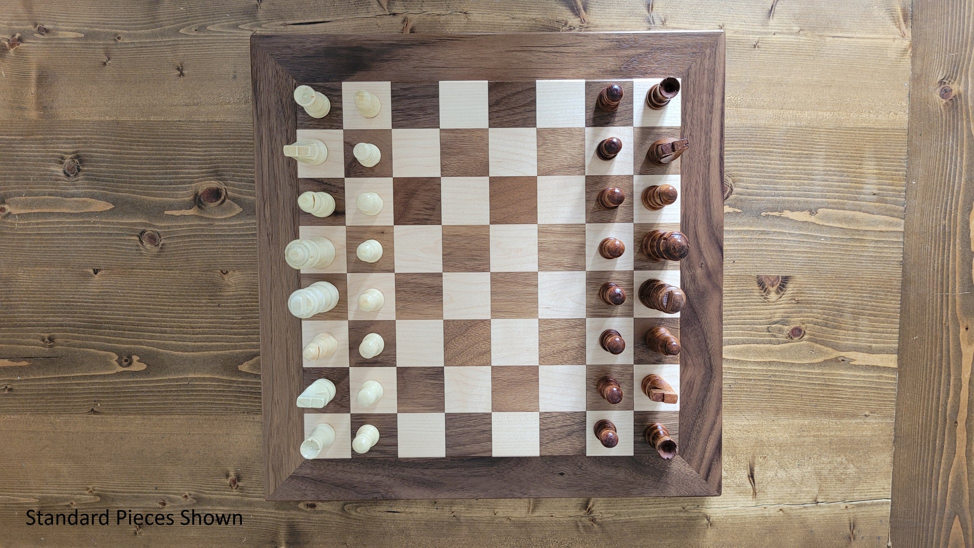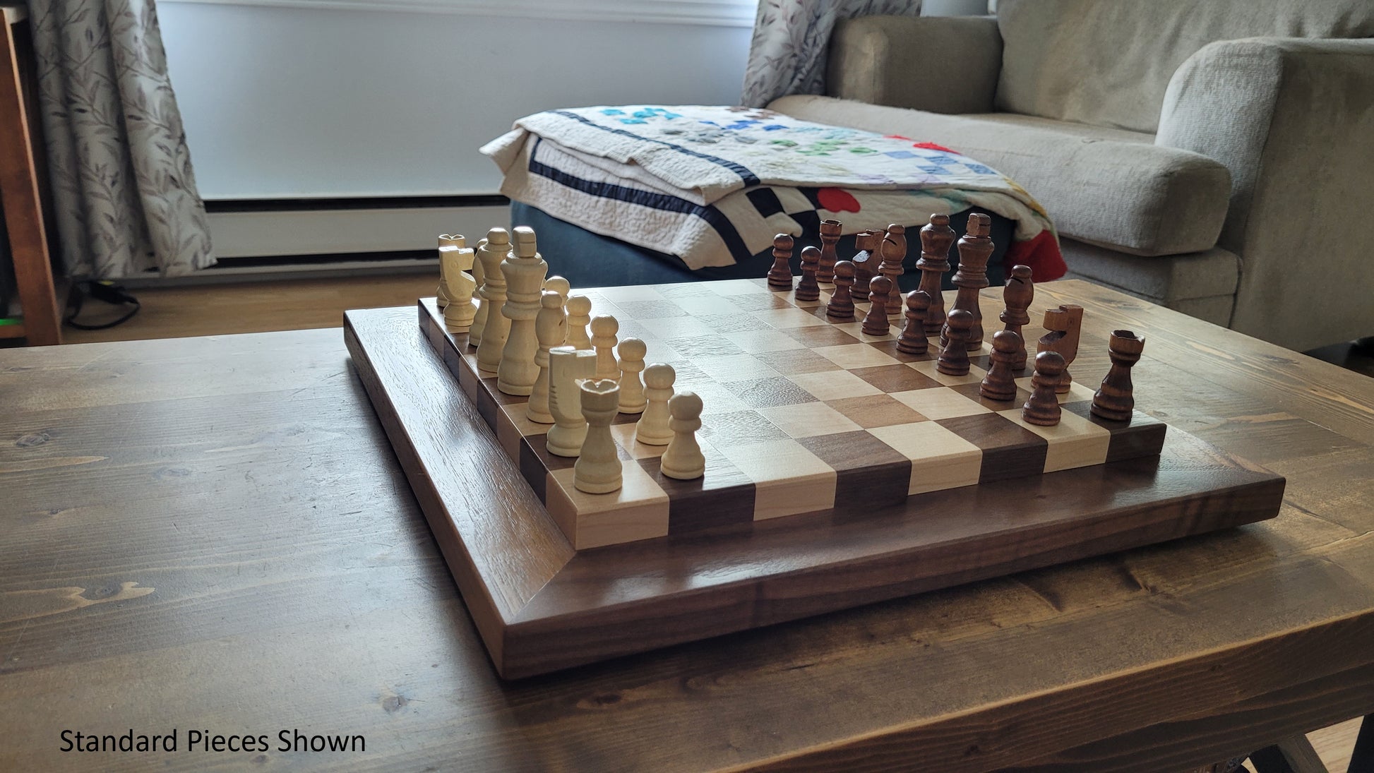 Wood Chess Set - Raised Board - Solid Walnut and Maple - Coffee Table Size - Hand Made